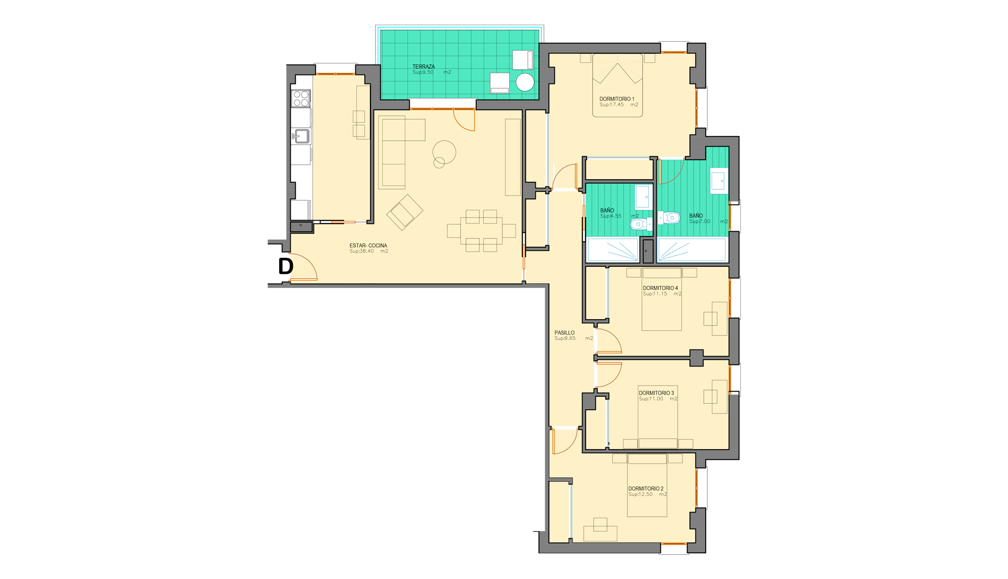 "Exclusiva vivienda con acabados de lujo de 141,70 m2 con 4 habitaciones, 2 baños, cocina-comedor y terraza"