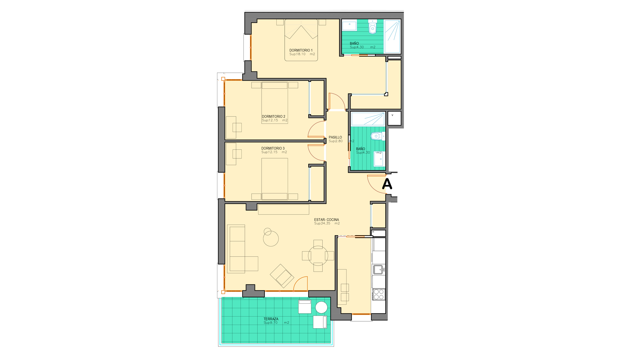 "Exclusiva vivienda con acabados de lujo de 115,10 m2 con 3 habitaciones, 2 baños, cocina-comedor y 2 terrazas"
