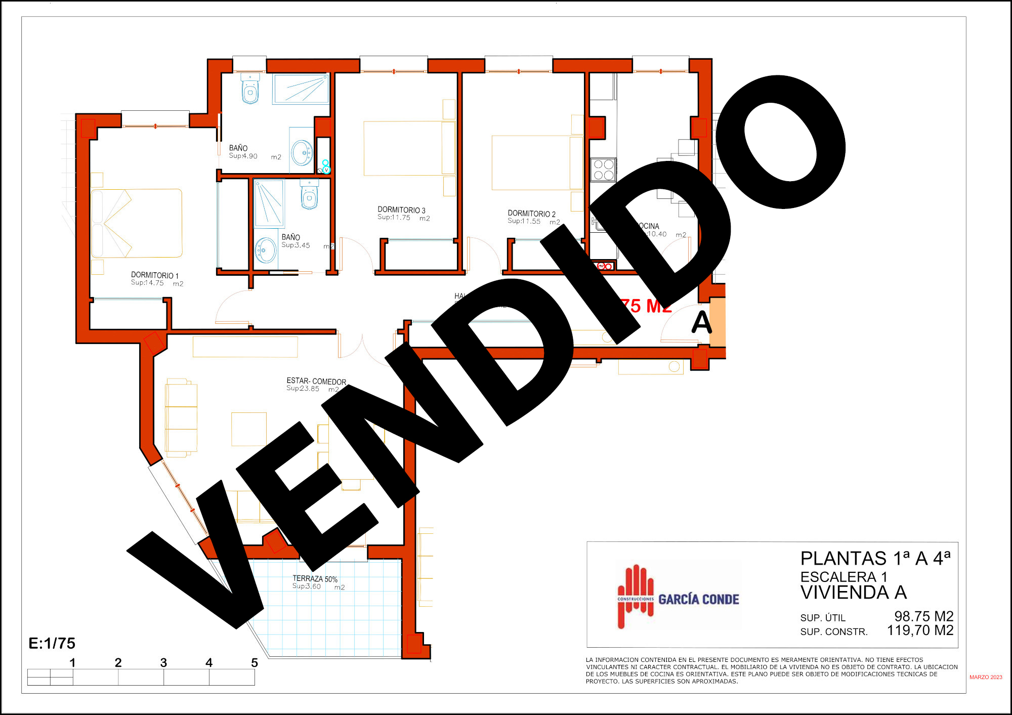 Ver presentación119,70 m2 constr | 98,75 m2 útil | 3 hab | 2 Baños | Comedor | Cocina | Terraza | Ascensor. Certificación energética A