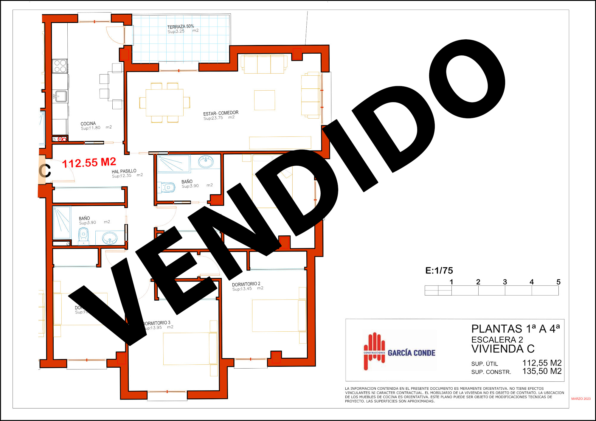135,50m2 constr | 112,55 m2 útil | 4 hab | 2 Baños | Comedor | Cocina | Terraza | Ascensor. Certificación energética A