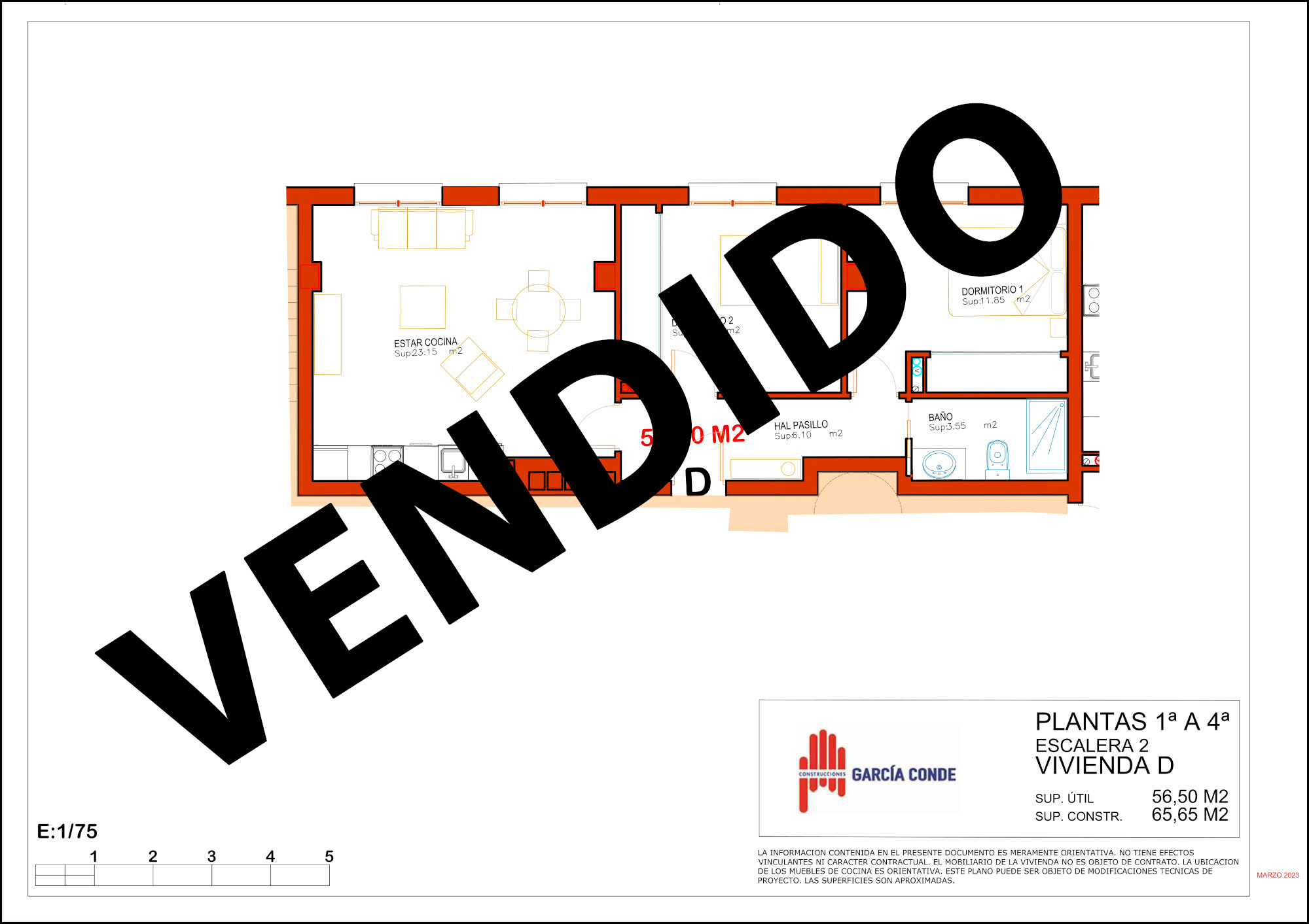 65,65 m2 constr | 56,50 m2 útil | 2 hab | 1 Baño | Cocina Comedor | Ascensor. Certificación energética A